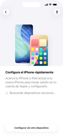 Sigue las indicaciones de la pantalla para transferir contenido de otro dispositivo iOS11 o con una versión más reciente o pulsa Configurar sin otro dispositivo.