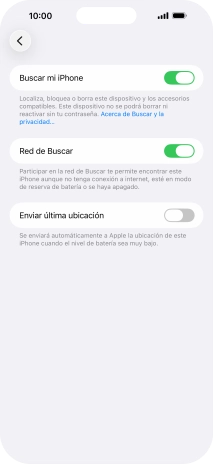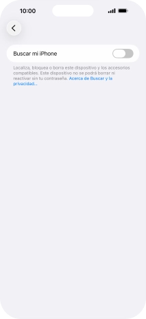Pulsa el indicador junto a "Buscar mi iPhone" para activar la función.