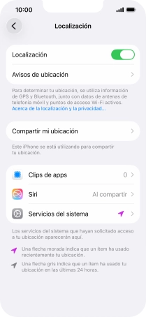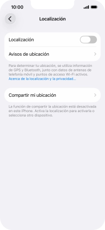 Pulsa el indicador junto a "Localización" para activar o desactivar la función.