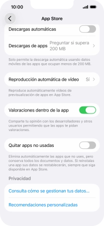 Pulsa el indicador junto a "Quitar apps no usadas" para activar o desactivar la función.