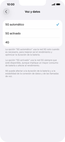 Si deseas activar el uso preferente de 5G, pulsa 5G activado.