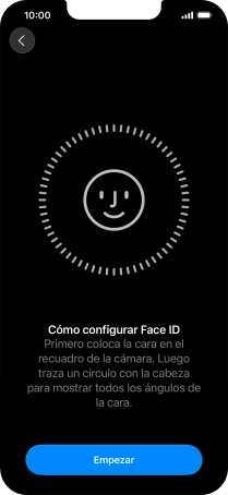 Pulsa Empezar y sigue las indicaciones de la pantalla para crear un código de seguridad con la función de reconocimiento facial (Face ID).