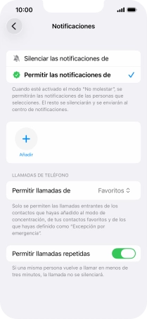 Pulsa Apps y sigue las indicaciones de la pantalla para elegir qué apps pueden enviarte notificaciones cuando No molestar está activado.