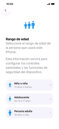 Si el teléfono lo va a usar un menor, sigue las indicaciones de la pantalla para crear una Cuenta de Apple para el menor.