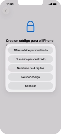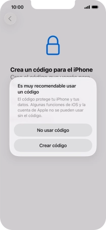 Sigue las indicaciones de la pantalla para activar el uso del código de seguridad o pulsa No usar código.