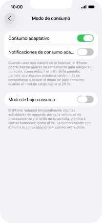 Pulsa el indicador junto a "Consumo adaptativo" para activar la función.