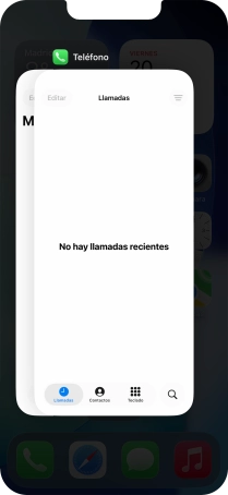 Desliza el dedo lentamente hacia arriba desde la parte inferior de la pantalla hasta visualizar la lista de las aplicaciones en ejecución.