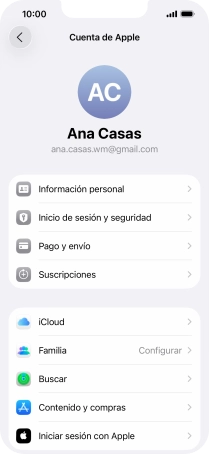 Pulsa la Cuenta de Apple.
