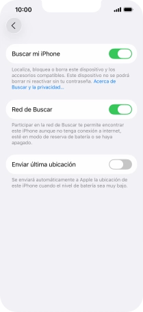 Pulsa el indicador junto a "Buscar mi iPhone" para activar la función.