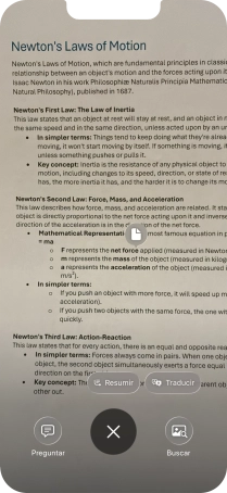 Para utilizar la inteligencia visual en un texto, fotografía el texto, pulsa el ajuste deseado y sigue las indicaciones de la pantalla para utilizar la función.