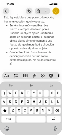 Para formatear el texto, pulsa el formato deseado y sigue las indicaciones de la pantalla para utilizar la función.