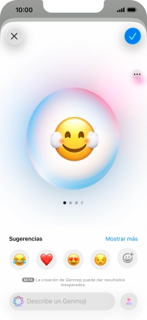 Para utilizar el Genmoji elegido en el mensaje, pulsa el icono de aceptar.