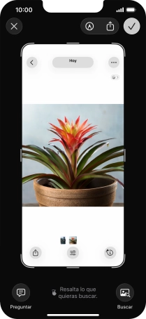 Puedes marcar un elemento de una fotografía y buscar información sobre este elemento en Internet. Es posible usar esta función en todas las apps de las que puedes hacer un pantallazo.