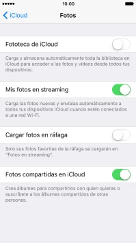 Pulsa el indicador junto a "Fototeca de iCloud" para activar o desactivar la función.