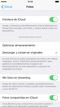 Si activas la función, se hará una copia de seguridad en iCloud de todas las fotografías y los videoclips del teléfono.