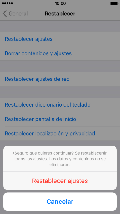 Pulsa Restablecer ajustes. Espera unos instantes mientras el teléfono restablece la configuración predeterminada.