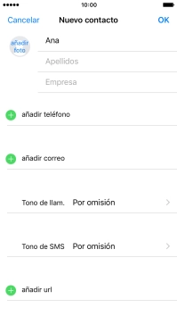 Sigue las indicaciones de la pantalla para añadir más información como, por ejemplo, la dirección de correo electrónico y el timbre de llamada personal.