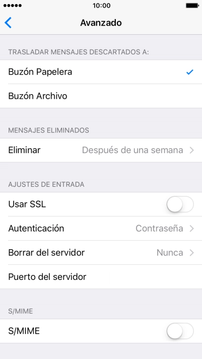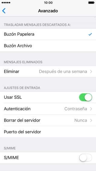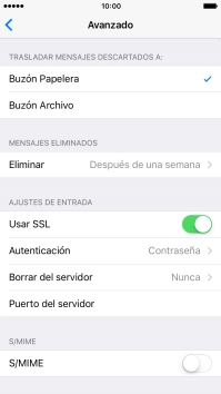 Pulsa el indicador junto a "Usar SSL" para desactivar la función.