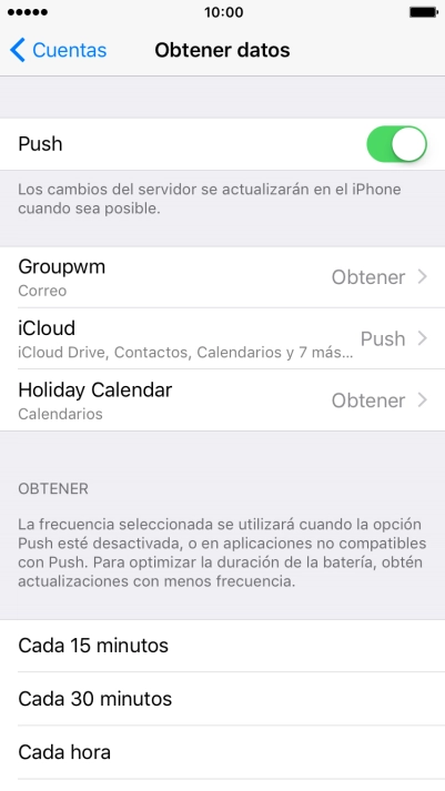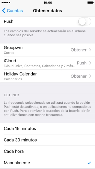 Pulsa el indicador junto a "Push" para activar o desactivar la función.