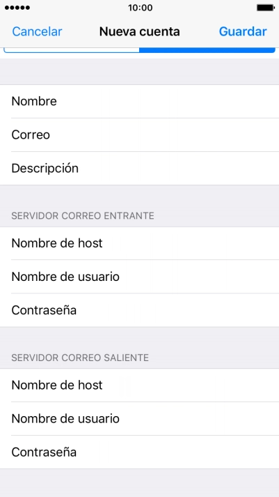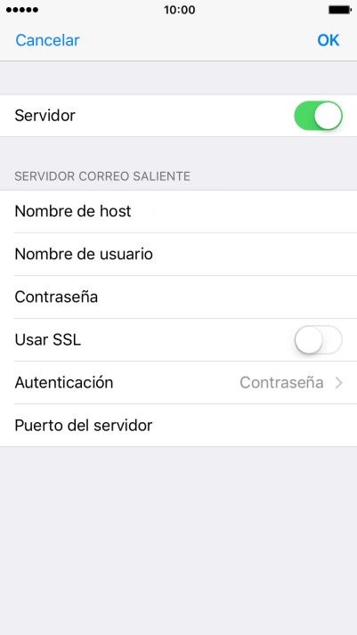 Pulsa Nombre de host e introduce el nombre del servidor de correo de salida de tu proveedor de correo.