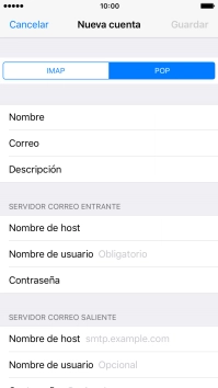 Pulsa Nombre de host e introduce el nombre del servidor de correo de entrada de tu proveedor de correo electrónico.