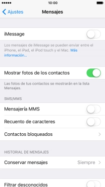Pulsa el indicador junto a "iMessage" para activar la función.