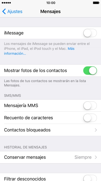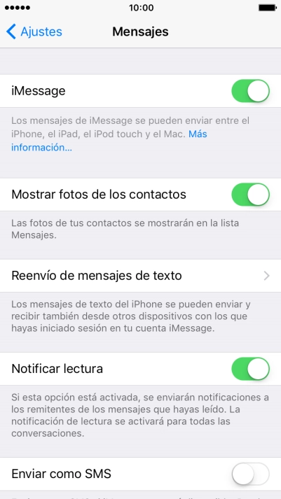 Si activas la función, los iMessages se enviarán como mensajes cortos normales en caso de que este servicio no esté disponible.