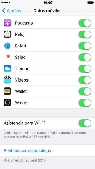Pulsa el indicador junto a "Datos móviles" para activar o desactivar la función.