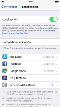 Pulsa el indicador junto a "Localización" para activar o desactivar la función.