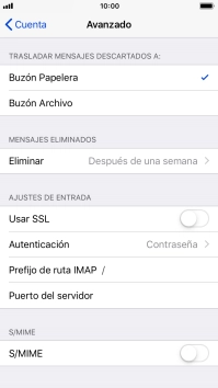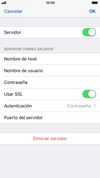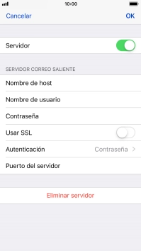 Pulsa el indicador junto a "Usar SSL" para desactivar la función.