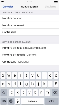 Pulsa Nombre de host e introduce el nombre del servidor de correo de entrada de tu proveedor de correo electrónico.