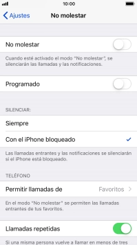 Pulsa Con el iPhone bloqueado si el teléfono solamente debe estar en modo silencioso cuando el bloqueo de pantalla está activado.