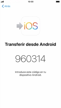 Seguir las indicaciones de la pantalla y de la app "Move to iOS" para transferir contenido de un teléfono con el sistema operativo Android al iPhone y para configurar el teléfono y dejarlo listo para su utilización.