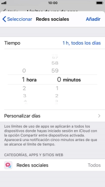 Configura el límite de tiempo deseado para el uso de la categoría seleccionada.