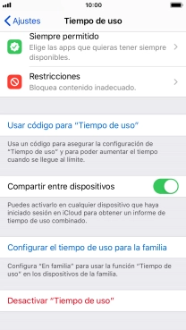 Pulsa Usar código para "Tiempo de uso" y sigue las indicaciones de la pantalla para seleccionar una contraseña para la función de Tiempo de uso de pantalla.