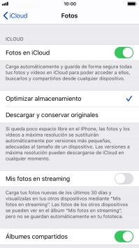 Pulsa el indicador junto a "Mis fotos en streaming" para activar o desactivar la función.