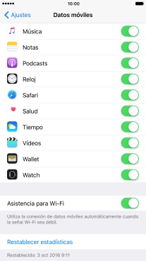 Pulsa el indicador junto a "Datos móviles" para activar o desactivar la función.