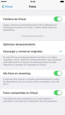 Si activas la función, se hará una copia de seguridad en iCloud de todas las fotografías y los videoclips del teléfono.