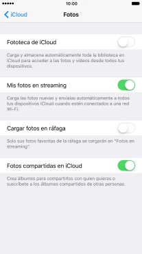 Pulsa el indicador junto a "Mis fotos en streaming" para activar o desactivar la función.