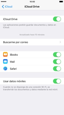 Pulsa el indicador junto a "iCloud Drive" para activar o desactivar la sincronización de archivos.