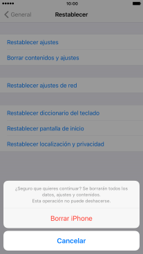 Pulsa Borrar iPhone. Espera unos instantes mientras el teléfono restablece la configuración predeterminada.