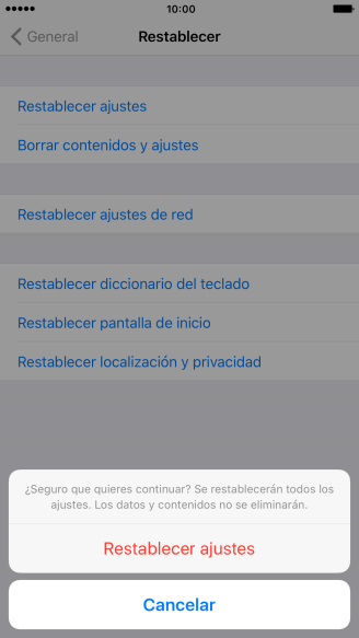 Pulsa Restablecer ajustes. Espera unos instantes mientras el teléfono restablece la configuración predeterminada.