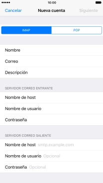 Pulsa Nombre de host e introduce el nombre del servidor de correo de entrada de tu proveedor de correo electrónico.