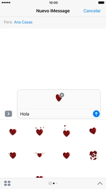 Pulsa el icono de adhesivos y sigue las indicaciones de la pantalla para añadir un adhesivo al iMessage.