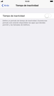 Pulsa el indicador junto a "Tiempo de inactividad" y sigue las indicaciones de la pantalla para seleccionar el período de tiempo que debe durar el tiempo de inactividad.