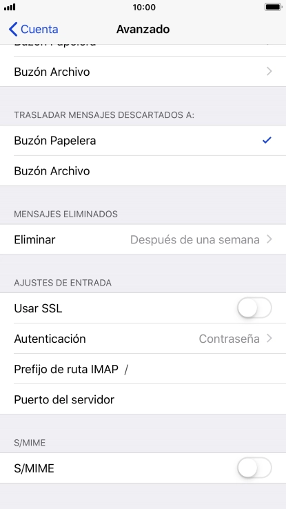 Pulsa el indicador junto a "Usar SSL" para desactivar la función.