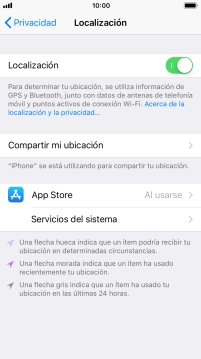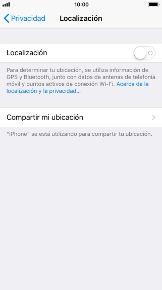 Pulsa el indicador junto a "Localización" para activar o desactivar la función.