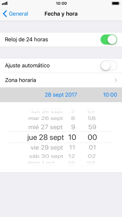 Ajusta la fecha y la hora en el Apple iPhone 8 iOS 11.0