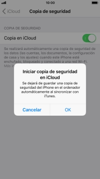 Pulsa el indicador junto a "Copia en iCloud" para activar la función.