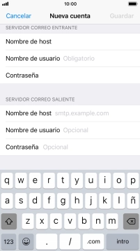 Pulsa Nombre de host e introduce el nombre del servidor de correo de entrada de tu proveedor de correo electrónico.